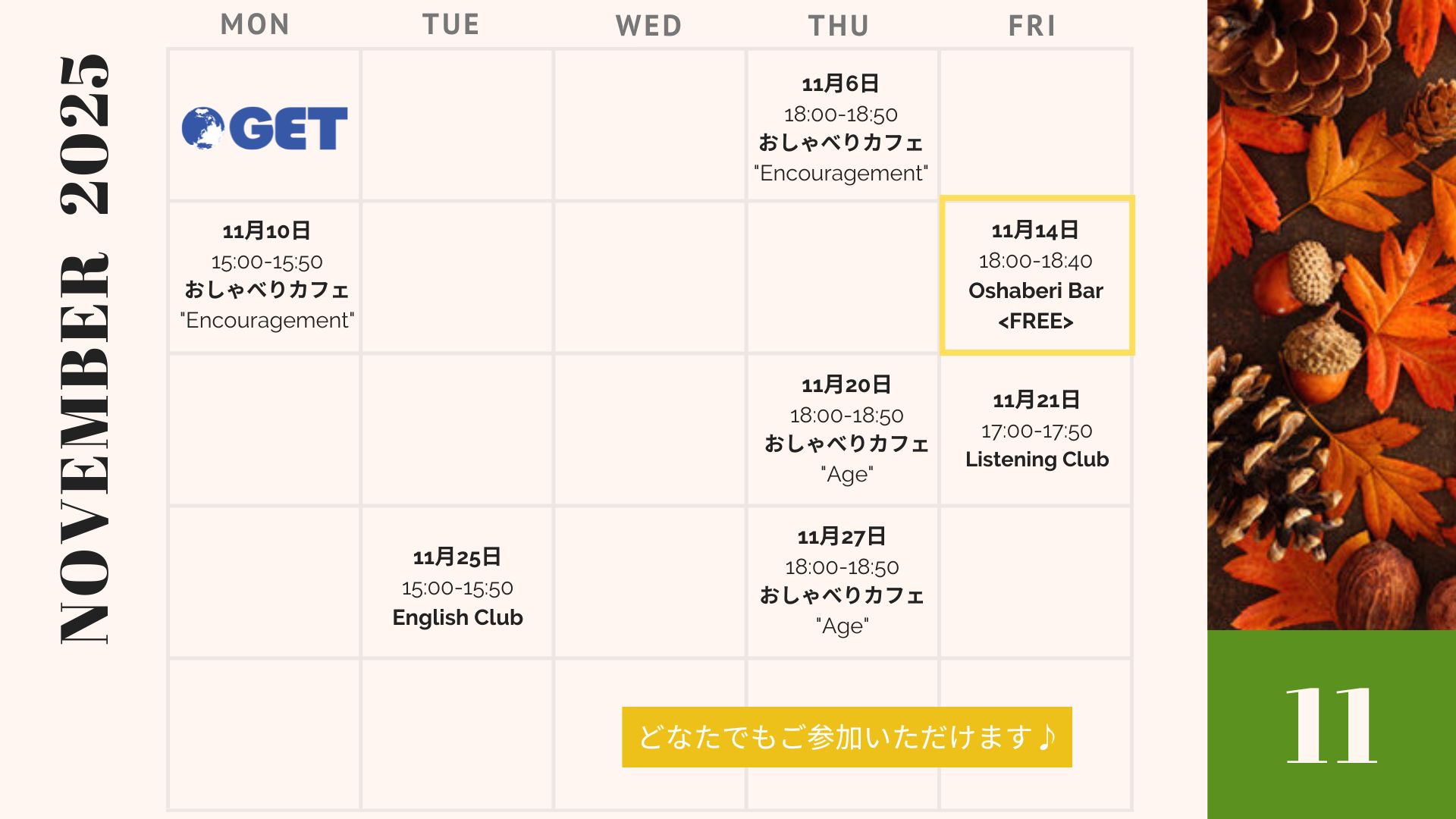 2025年11月の英語・スペイン語オンラインイベントスケジュール